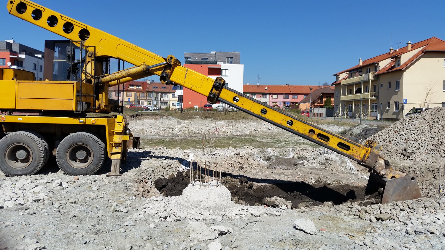 Pozemky jsou připravené na pilotáž (hlubinné zákládání staveb)