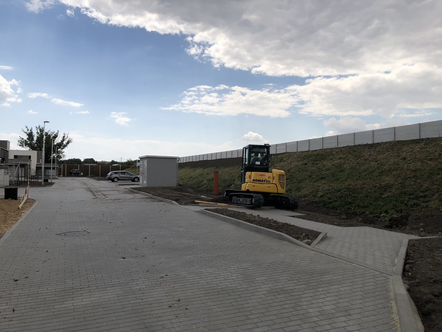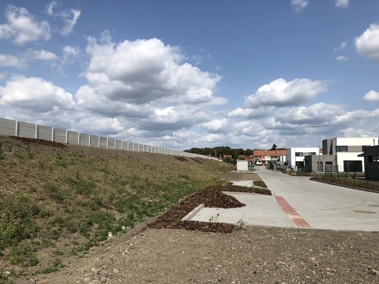 31.8.2018 - páteřní komunikace u rodinných domů (po levé straně je protihlukový val)