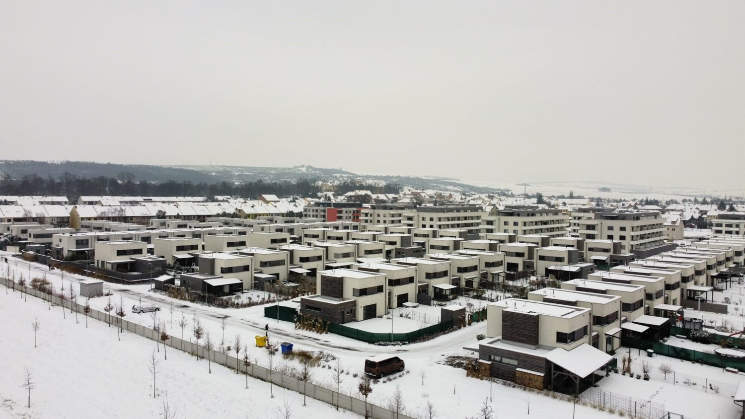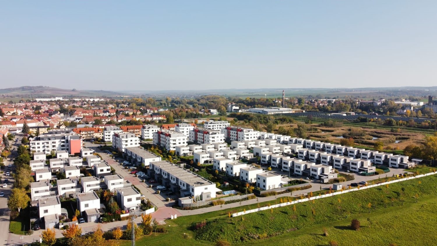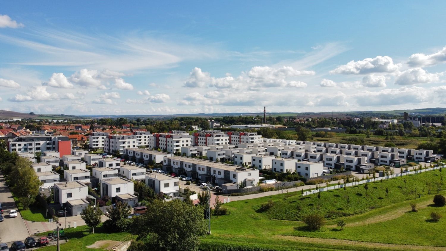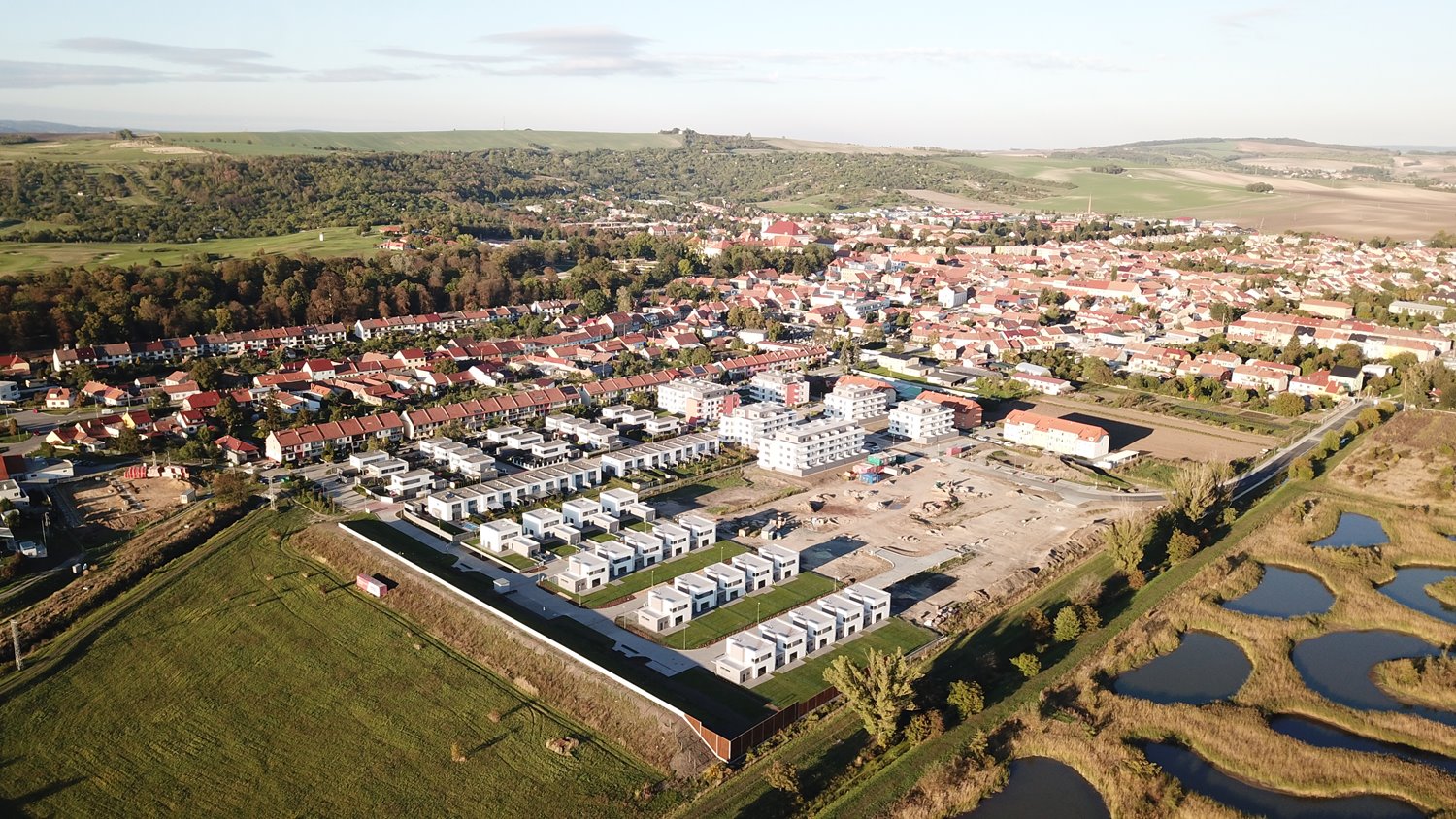 Panoramatický pohled na celou výstavbu (zleva RD a zprava BD)