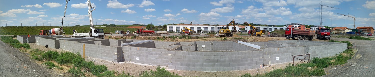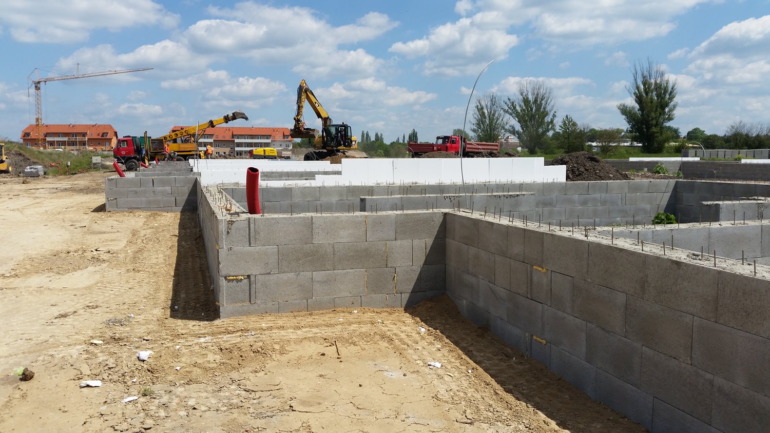 15.09.2021 RD - realizujeme opěrnou zeď za domy a vyzdíváme 1NP domu RD_61, RD_62 a RD_63)