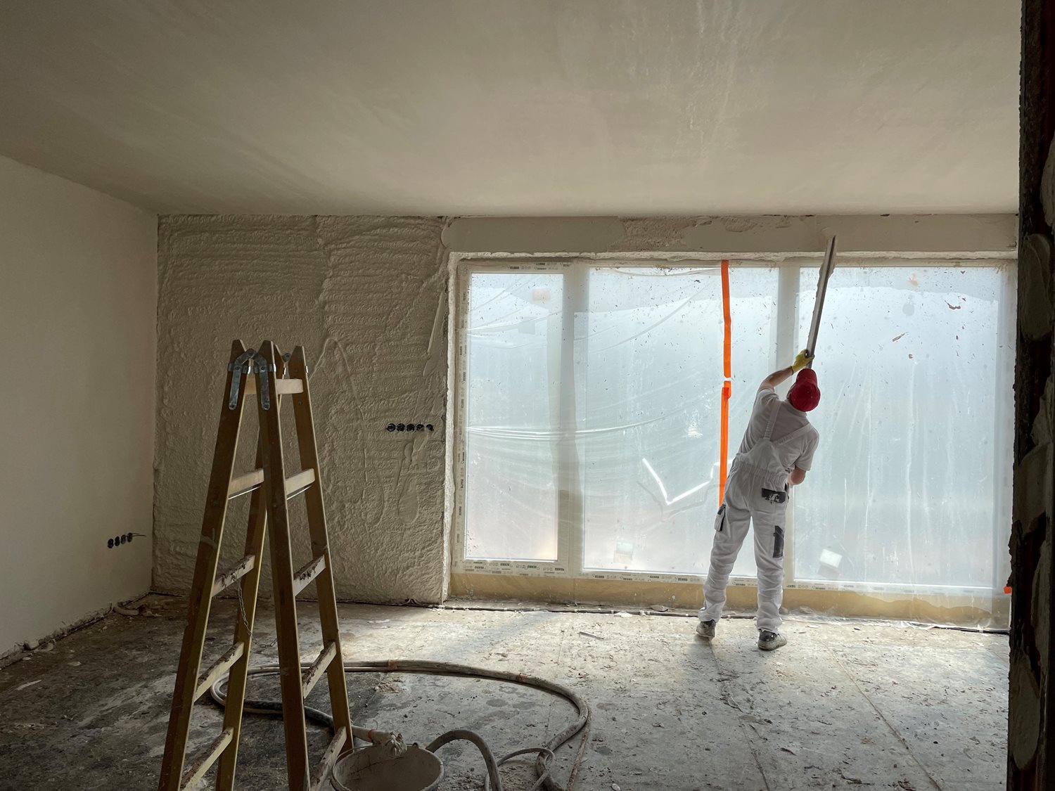 12.11.2019 - aplikujeme sádrové interiérové omítky v rodinných domech