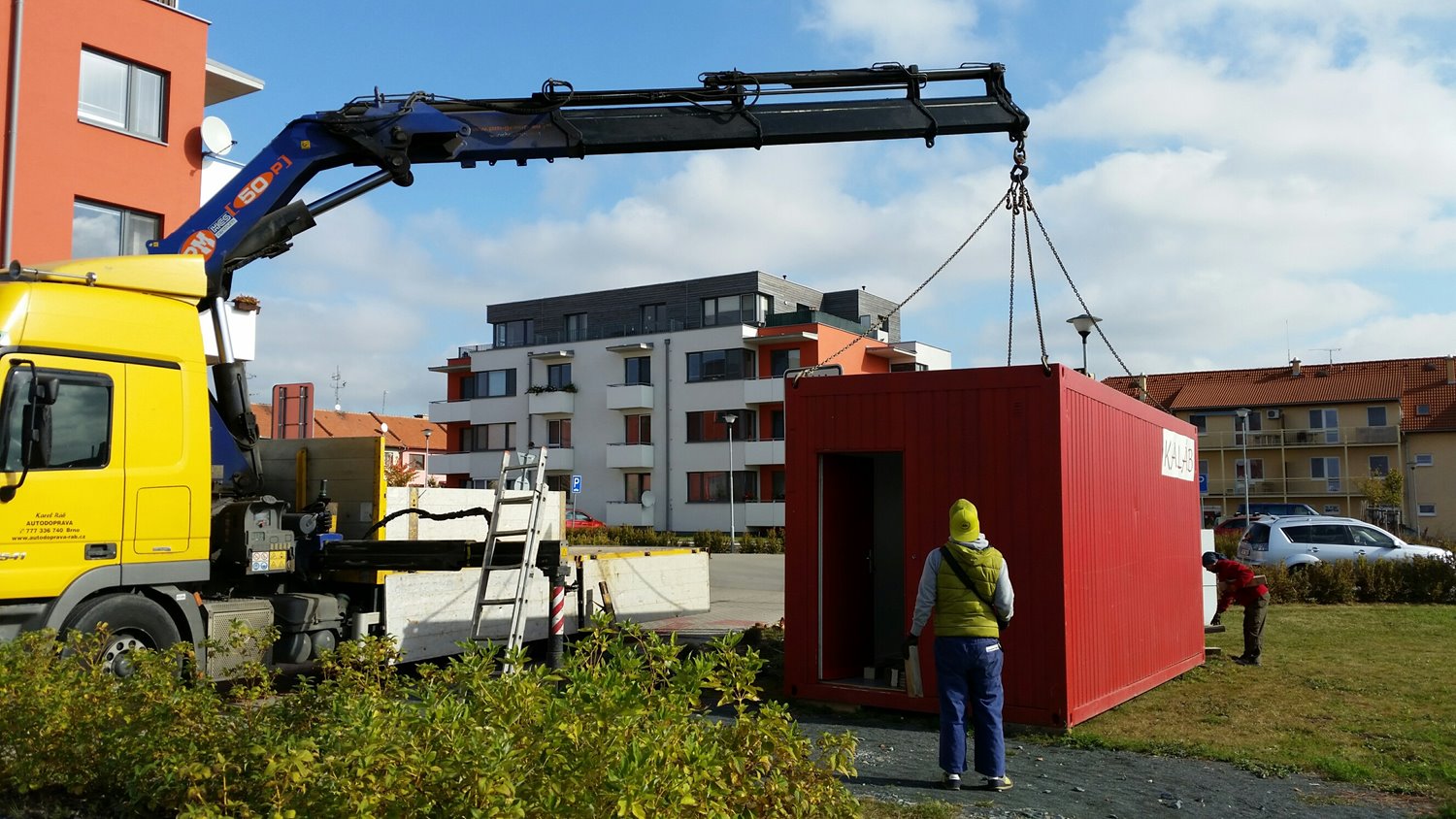 Zařízení stavby (bunkoviště) - probíhají práce na zajištění bunkovitě ochrannou konstrukcí (zábradlím)