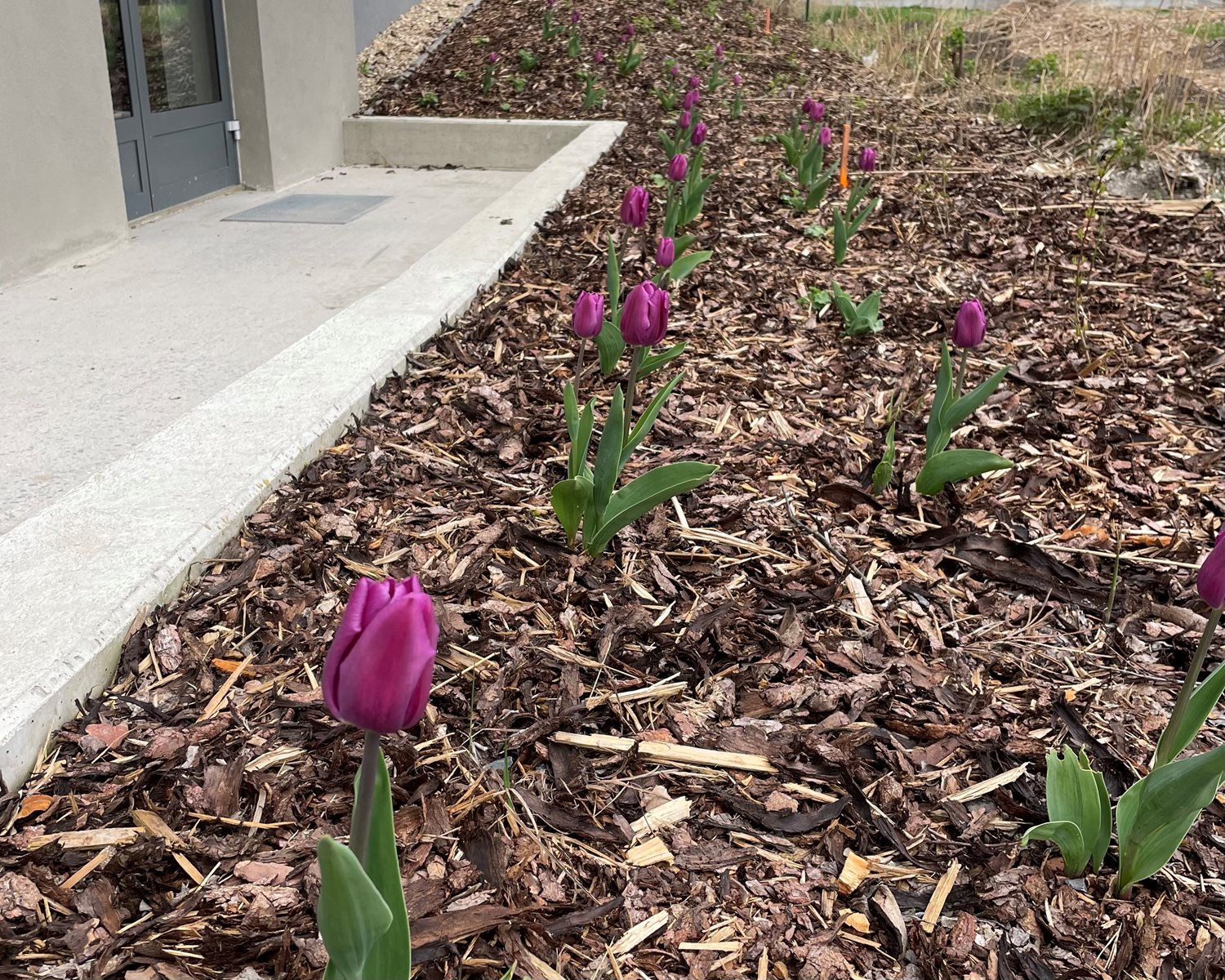 Vykoukla novinka ve výsadbě - fialové tulipány :-)
