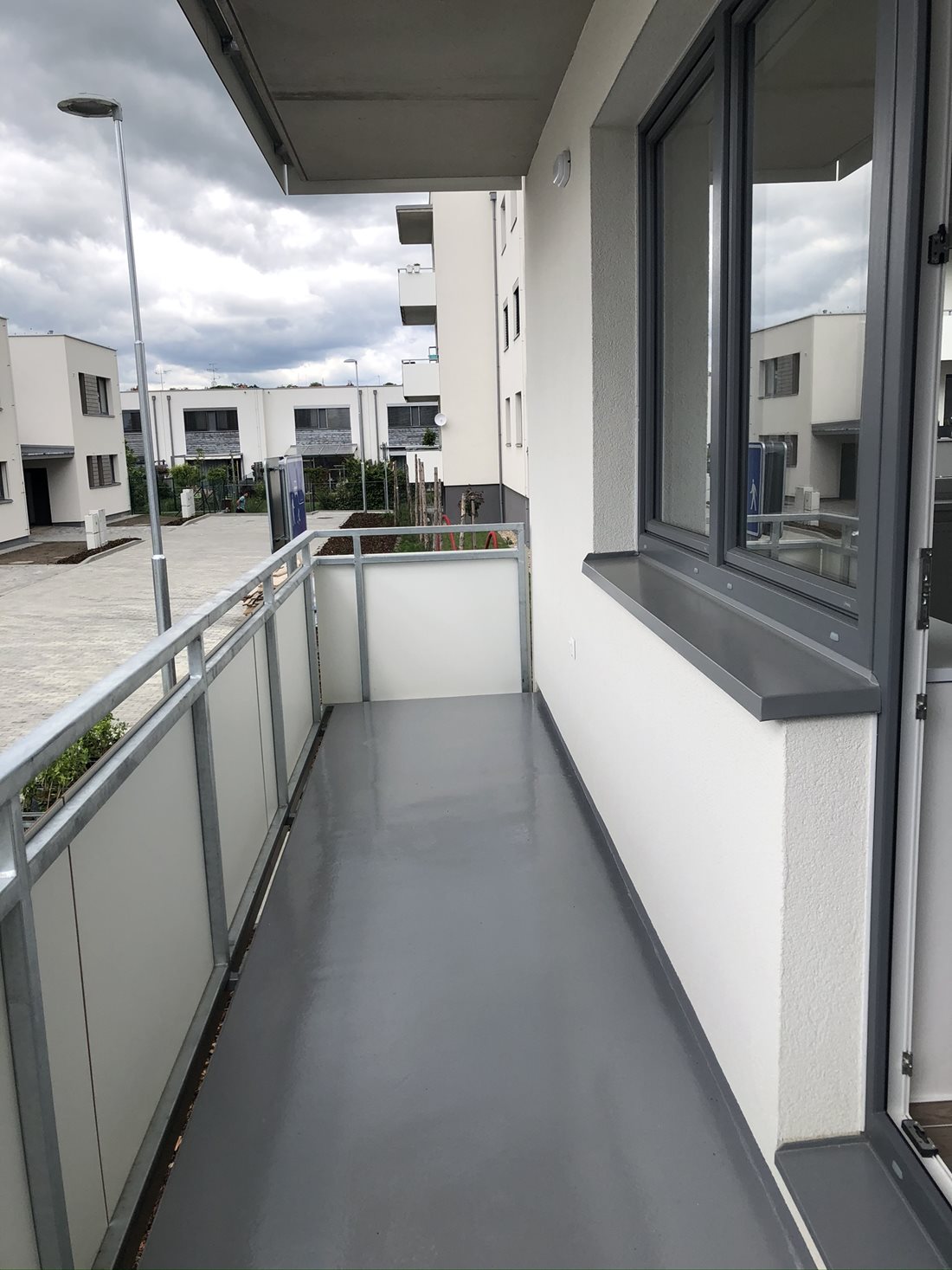 keramická dlažba 60 X 60 cm (Marazzi Stonework), barevnost ve čtyřech variantách, ukončena keramickým sokolíkem s hliníkovou lištou